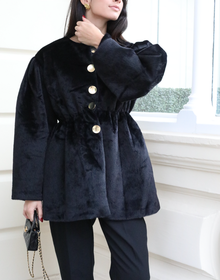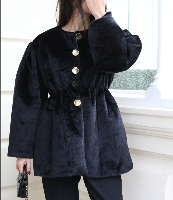 The Midnight Muse Coat embodies effortless elegance and timeless allure. Crafted from luxuriously soft faux mink, this black coat offers both warmth and sophistication — a statement piece designed for the modern, modest woman.