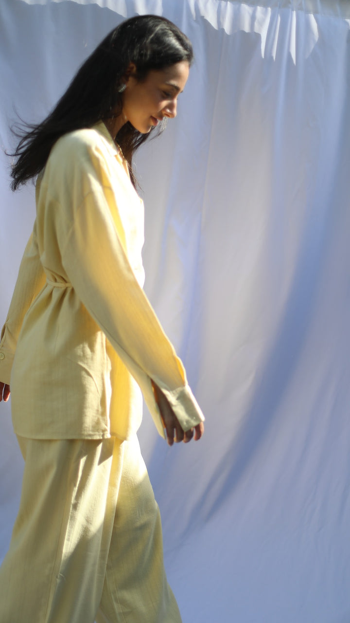 The soft butter yellow hue evokes summer picnics, slow days, and sunlit confidence. Worn together or styled apart, Sunset Bloom is designed for women who appreciate understated elegance with a fresh seasonal twist.