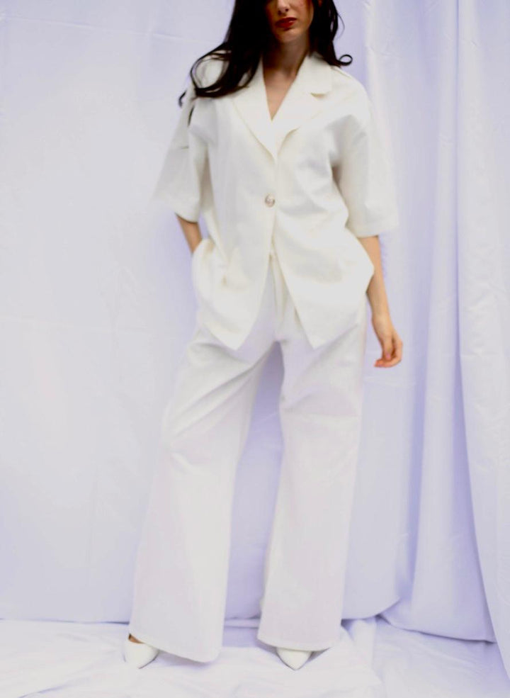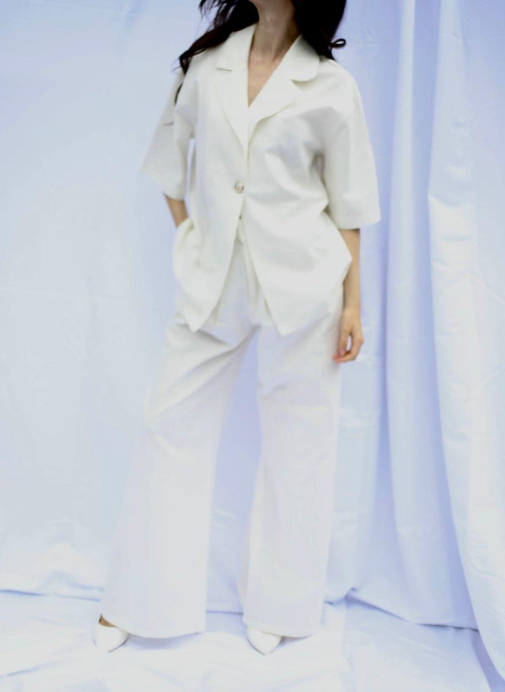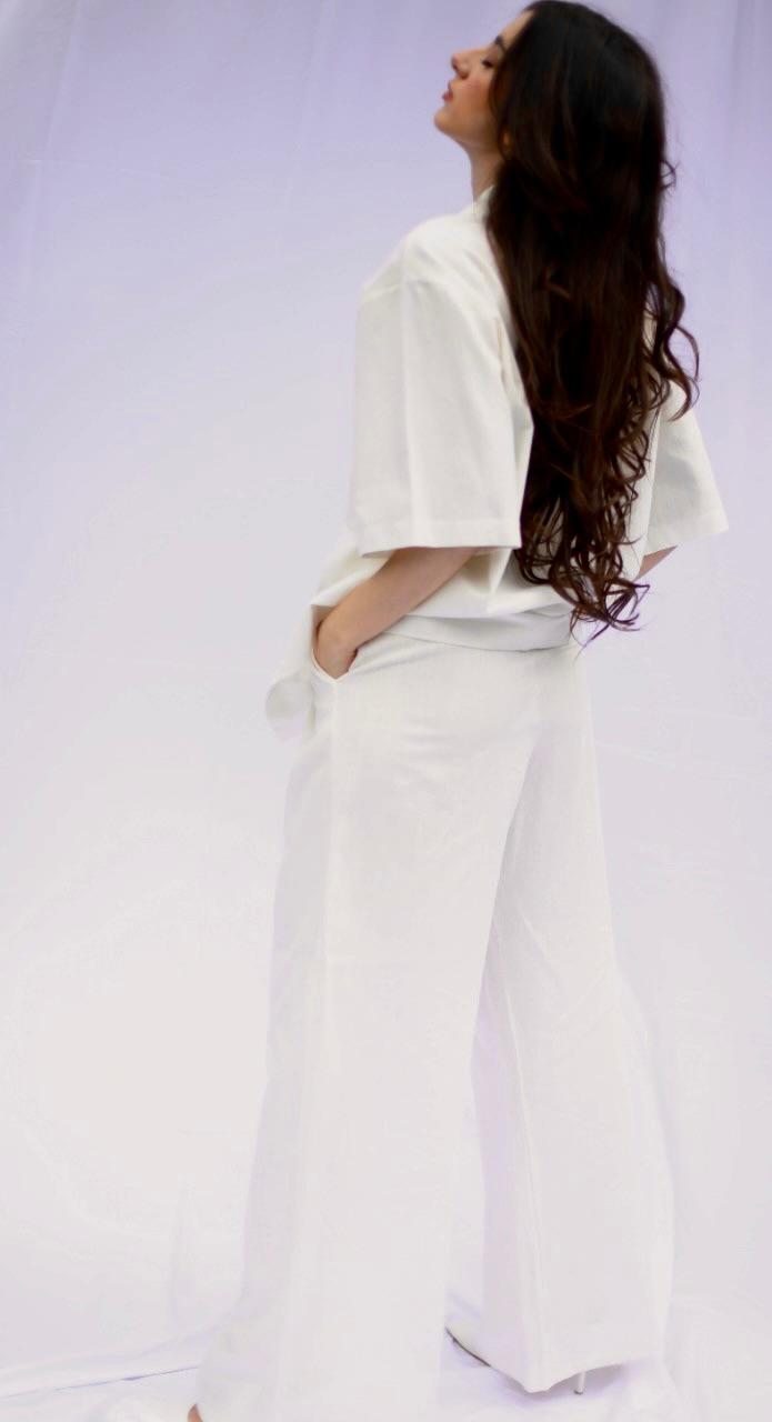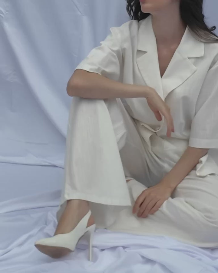 Elevate your everyday style with the Vanilla Crest Co‑ord Set, a timeless cream ensemble that blends modern tailoring with effortless comfort. Crafted from 100% breathable cotton, this versatile set features a one‑button jacket‑style shirt paired with flowing wide‑leg trousers, offering a sophisticated yet relaxed silhouette.